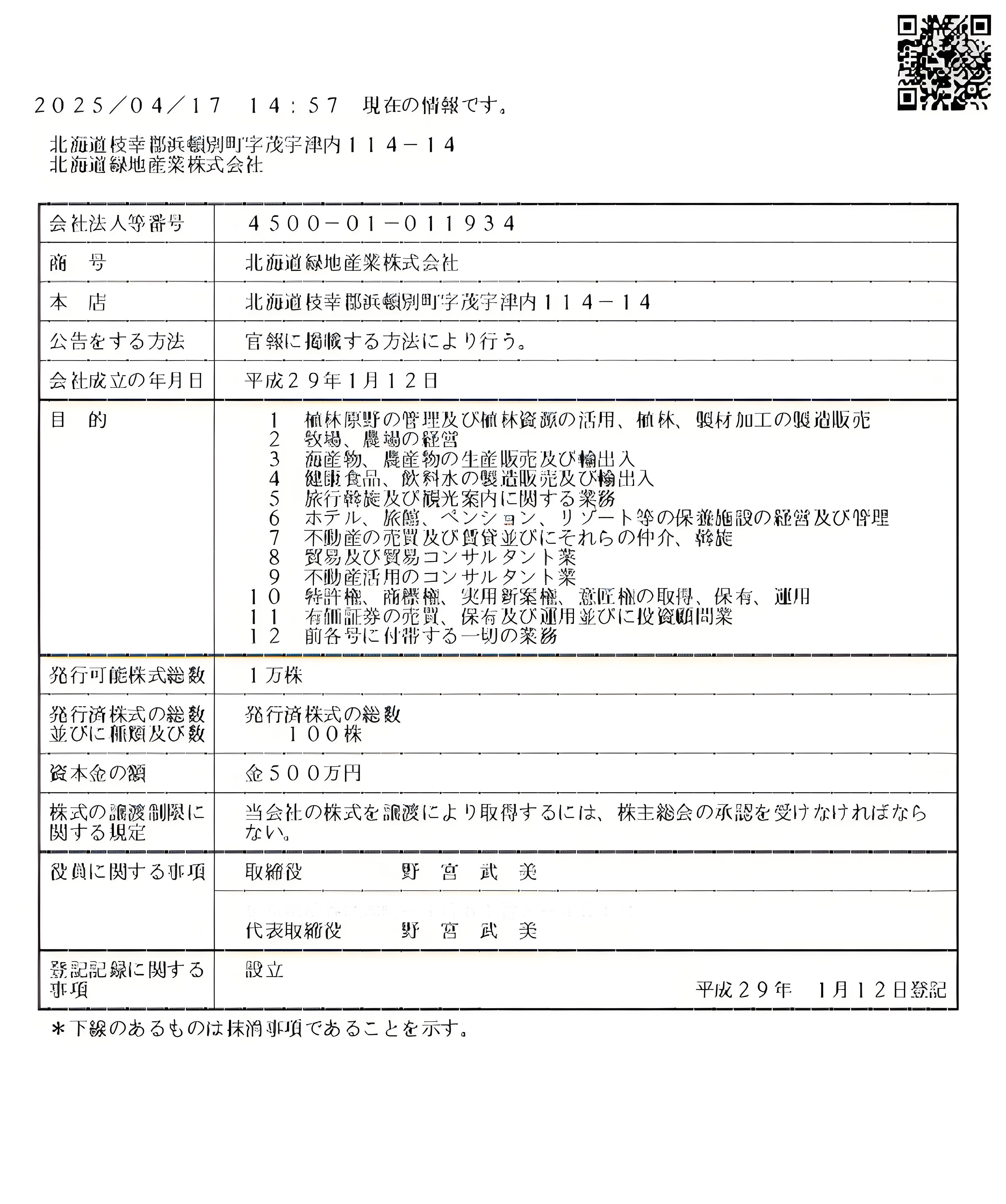 | 所有者 | 北海道緑地産業株式会社(関連会社、社長は野宮武美) |