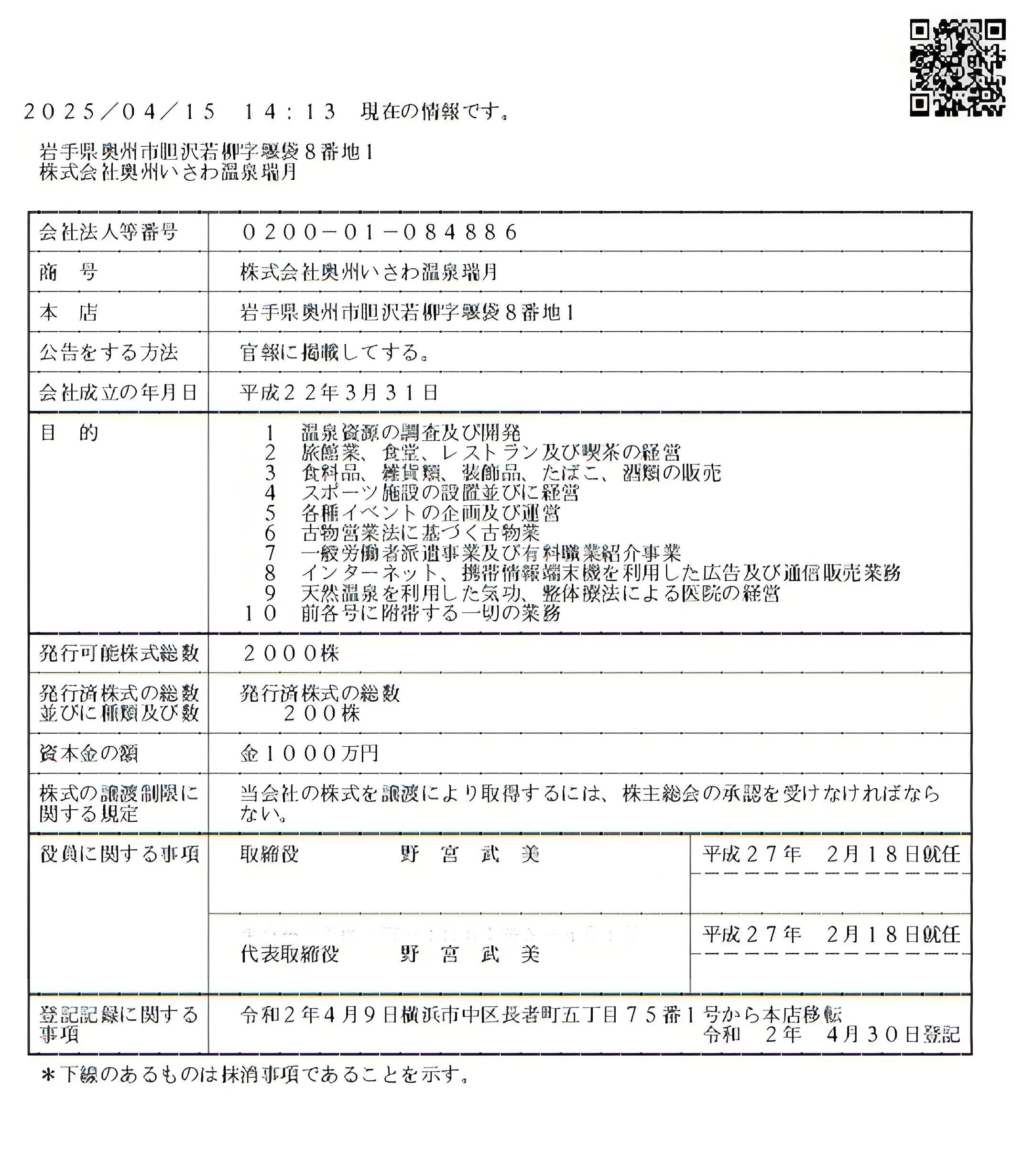 | 所有者 | 株式会社奥州いさわ温泉瑞月(関連会社、社長は野宮武美) |