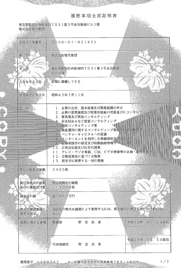 | 所有者 | 株式会社現代集団(関連会社、社長は野宮武美) |